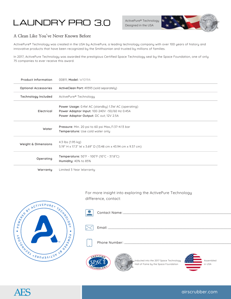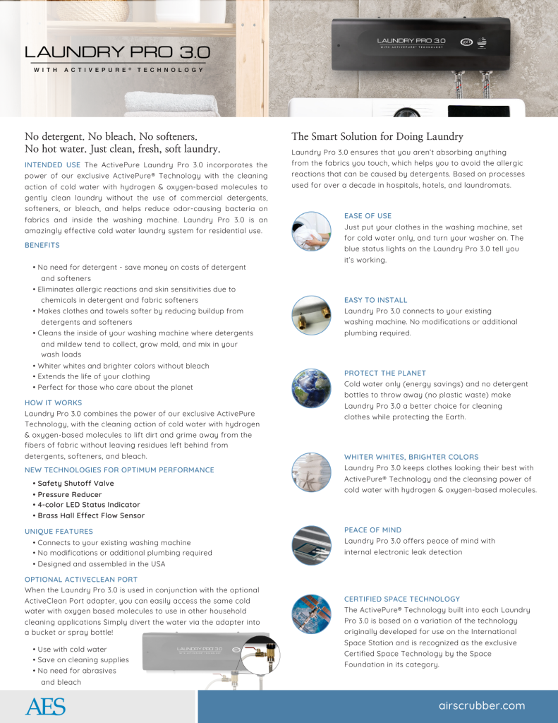 *NOTE: Laundry Pro 3.0 reduces or eliminates the need for laundry detergent. While many users find that Laundry Pro 3.0 alone effectively cleans their laundry, you may find it necessary to pre-treat or use a reduced amount of detergent to remove certain stains. If you find that detergent is necessary, we recommend using 1/8th the amount you previously used before your Laundry Pro 3.0 purchase.